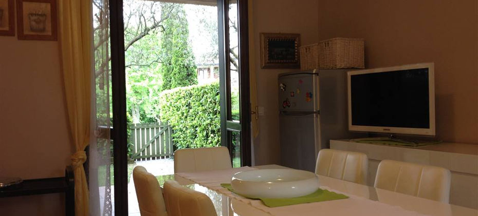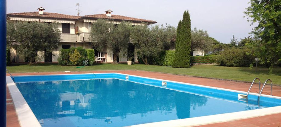 Villetta indipendente Terra/Cielo, Vista del Lago, posta al piano terra, con ampio giardino di proprietà esclusiva, con garage e cantina, inserito in piccolo contesto residenziale di 11 unità immobiliari, con ampio parco comune di circa mq. 4.000 con piscina di Mt. 18 x 9. Ingresso indipendente, soggiorno con doppia PortaFinestra, portico con caminetto, cucino con portafinestra, due camere da letto e Bagno finestrato;